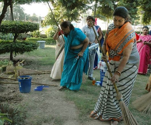 The preparation of the launch of swach bharat is started. The HRD minister Smriti Irani has started the preparation of swachh bharat today in Delhi by cleaning gardens. check out the below pics.